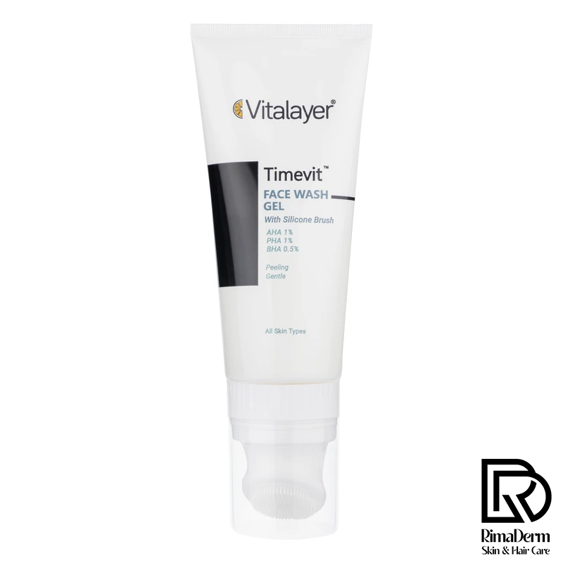 ژل براش شستشو صورت تایم ویت به دلیل داشتن AHA و PHA ملایم به همراه براش سیلیکونی موجب می شود سلول های مرده از سطح پوست پاک شوند و فرایند پاک سازی عمقی پوست به خوبی اتفاق بیافتد. در ضمن این ژل به علت داشتن نیاسینامید به رطوبت رسانی پوست نیز کمک میکند در ضمن در ترکیبات آن از آلانتوئین که ضد آلتهاب است نیز استفاده شده. ژل براش تایم ویت ویتالیر هیچ گونه ترکیب صابونی ندارد در نتیجه به حفظ سد دفاعی پوست کمک میکند.